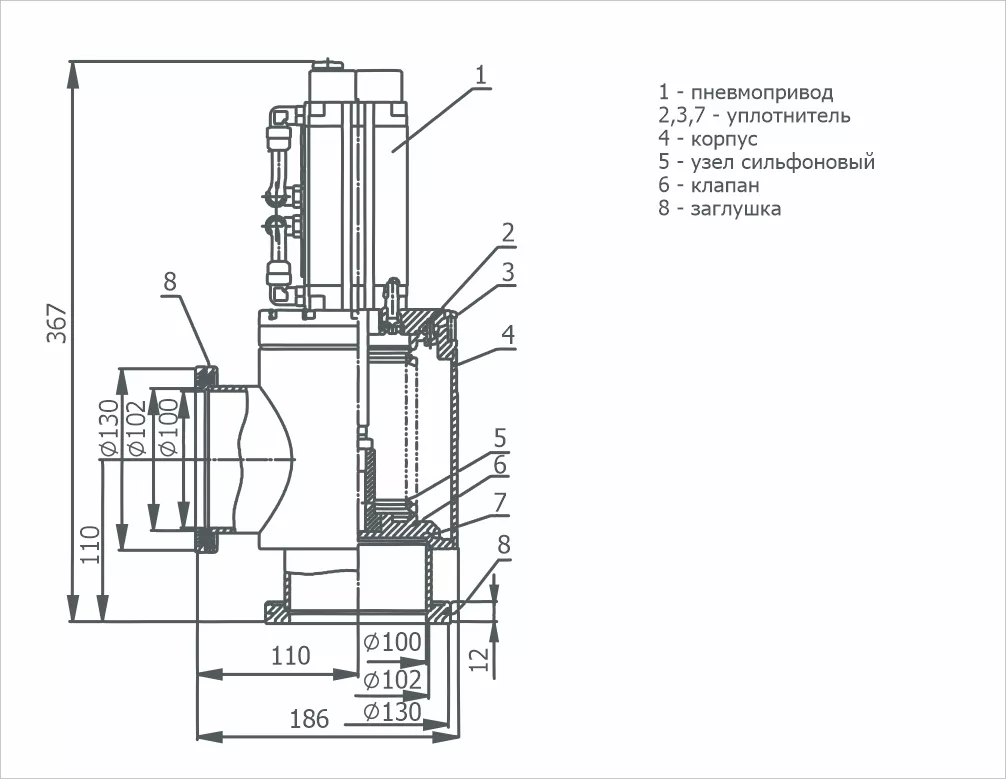 Пневматический вакуумный клапан КВП-100