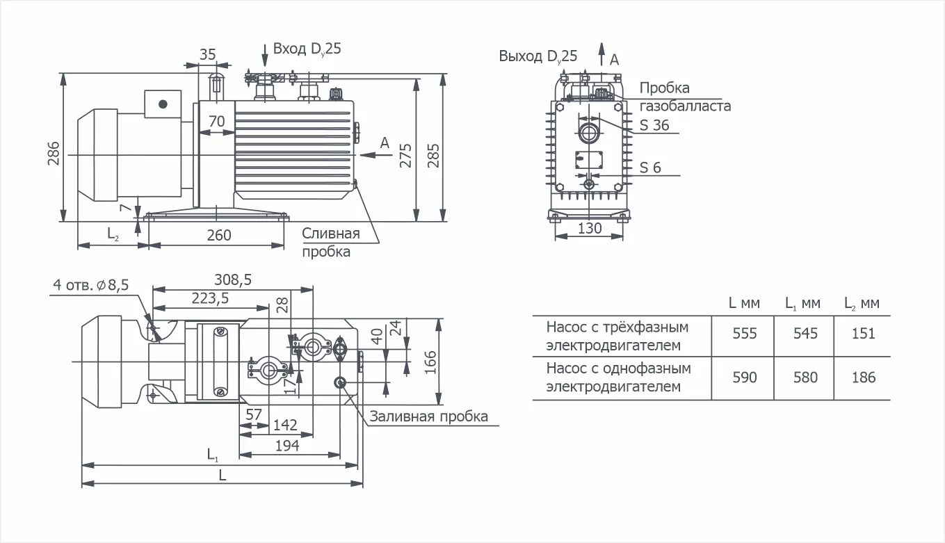 Габаритные размеры с трехфазным электродвигателем, мм, не более:
