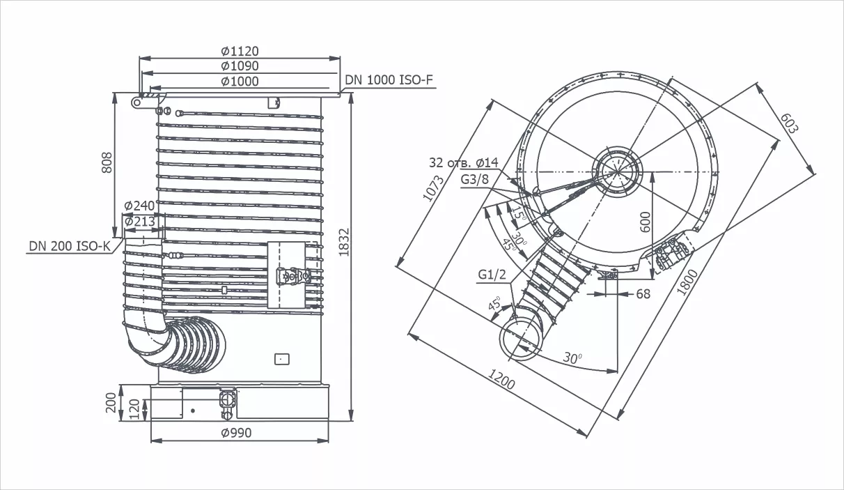 Диффузионный насос НД-1000Э: описание, преимущества, область применения, технические характеристики, габаритный чертёж, рекламные материалы