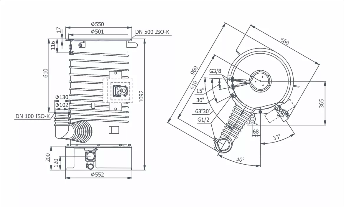 Диффузионный насос НД-500Э: описание, преимущества, область применения, технические характеристики, габаритный чертёж, рекламные материалы